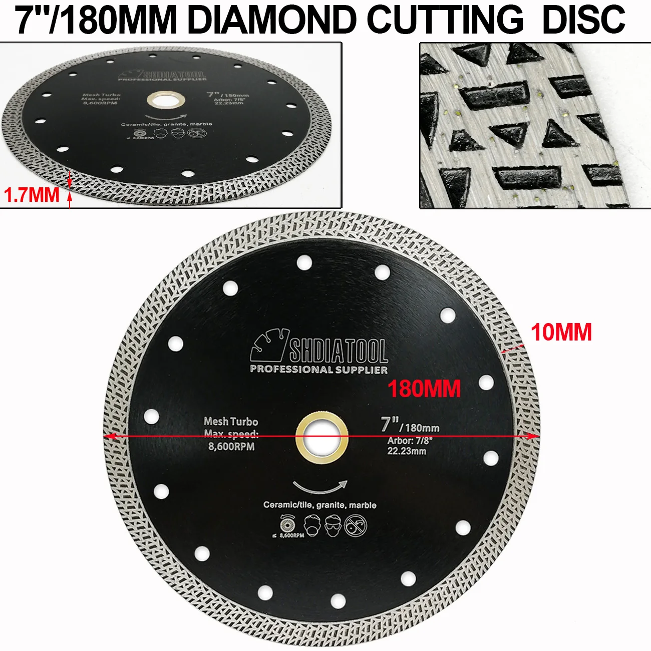 » Promo SHDIATOOL 1pc Dia 7" Hot pressed sintered Mesh Turbo Diamond Saw blade 180mm Dry or Wet Cutting Disc for Stone Hard material